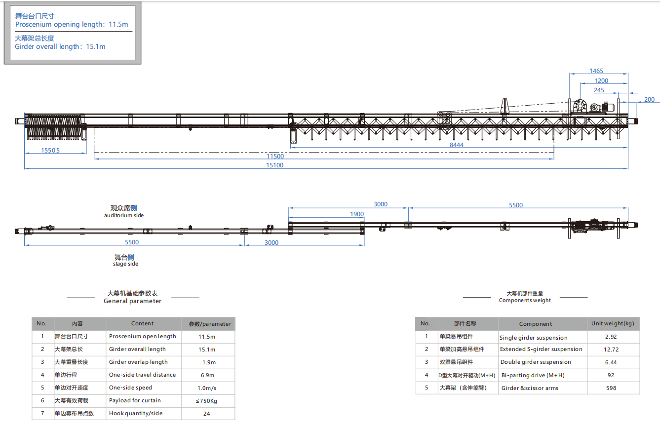 大幕机选型图 11.5m/15.1m