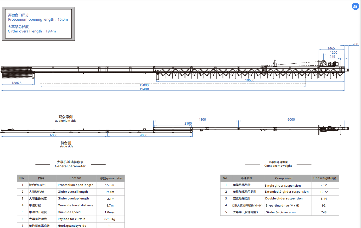 大幕机选型图 15.0m/19.4m