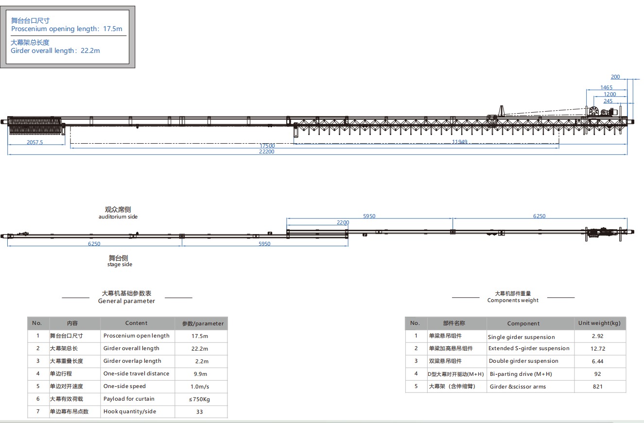 大幕机选型图 17.5m/22.2m